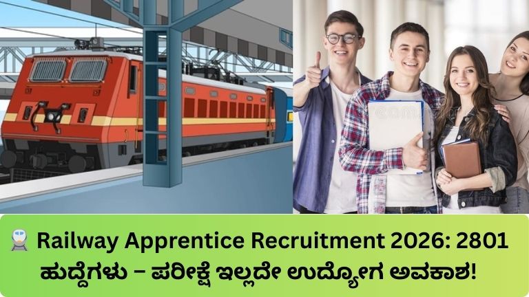 🚆 Railway Apprentice Recruitment 2026: 2801 ಹುದ್ದೆಗಳು – ಪರೀಕ್ಷೆ ಇಲ್ಲದೇ ಉದ್ಯೋಗ ಅವಕಾಶ! ಸರ್ಕಾರಿ ಉದ್ಯೋಗಕ್ಕಾಗಿ ಕಾಯುತ್ತಿರುವ ಅಭ್ಯರ್ಥಿಗಳಿಗೆ ಇದು ದೊಡ್ಡ ಸುವರ್ಣಾವಕಾಶ. Railway …